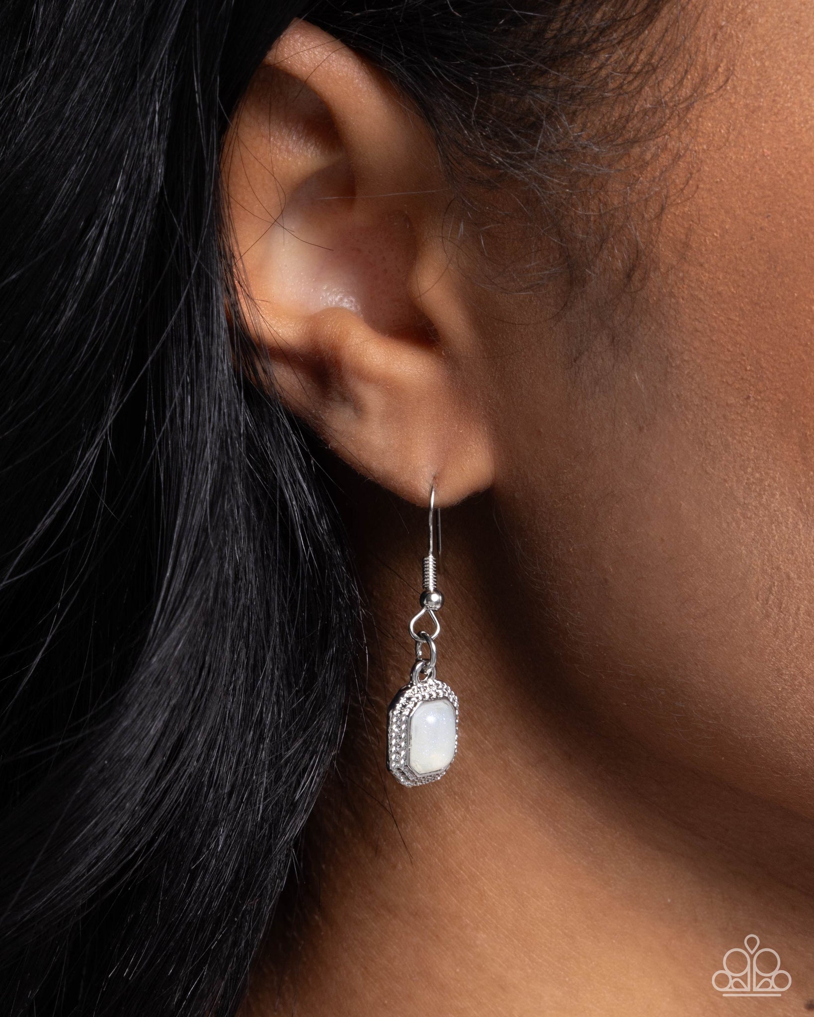 Featuring a subtle glitter, an oversized white resin rectangular pendant glides along a flattened silver snake chain below the neckline, for a brilliant pop of color. Features an adjustable clasp closure.