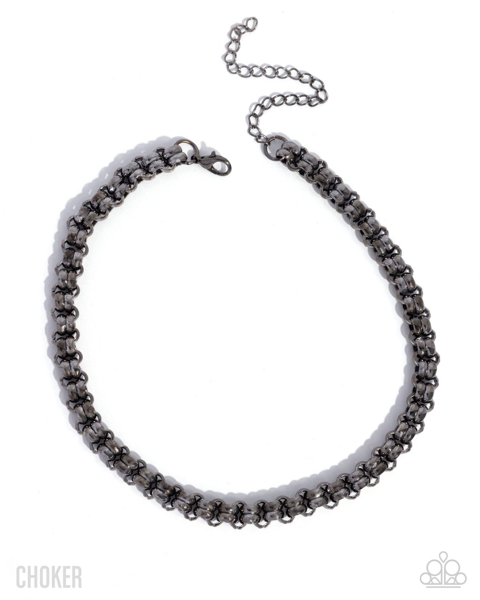 Featuring a doubled effect, a glistening gunmetal box chain loops around the collar for a passionate punk-inspired display. Features an adjustable clasp closure.