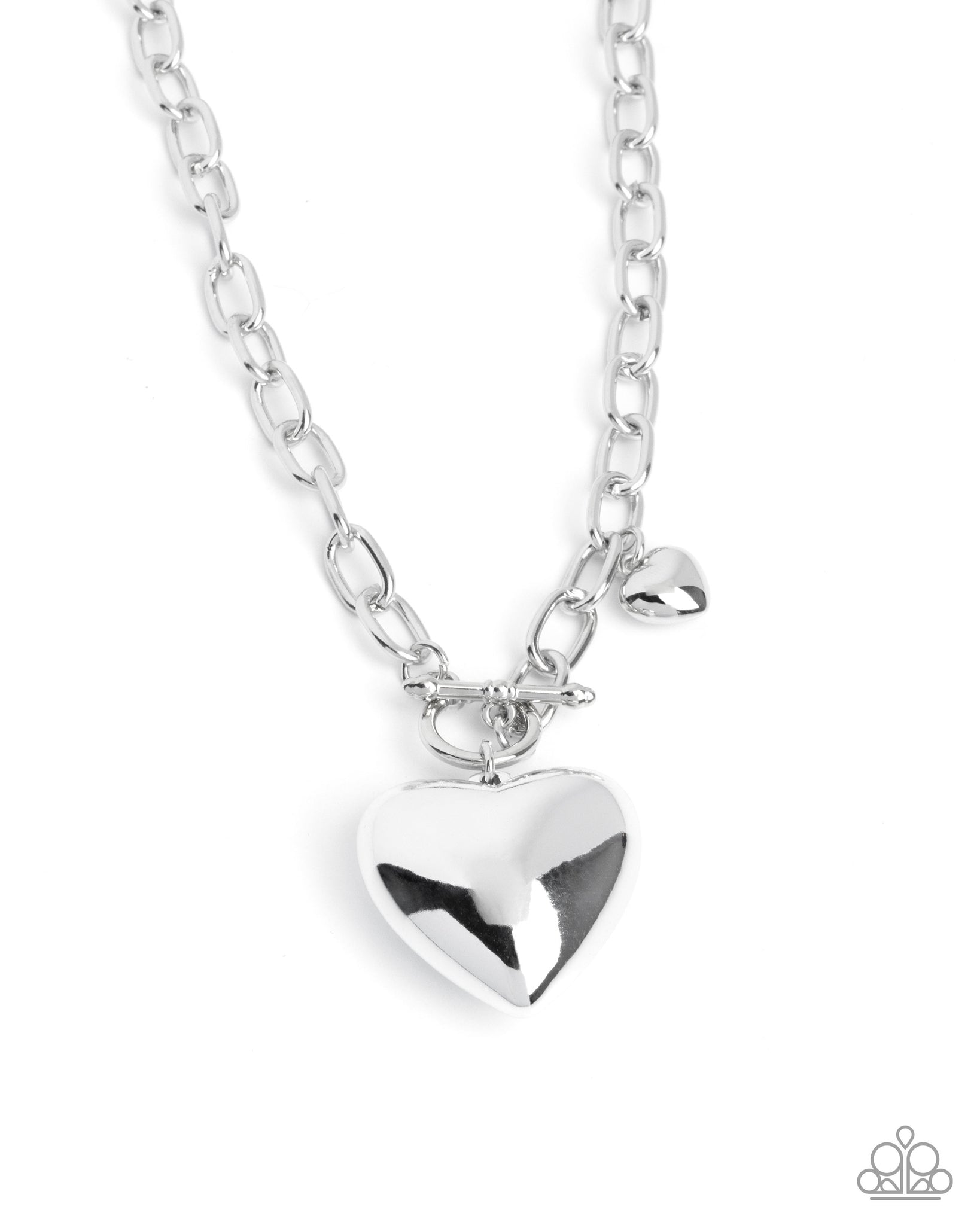 Featuring a high sheen, an oversized silver heart pendant swings from a thick silver cable chain below the neckline for a heartfelt haute display. An additional dainty silver heart sways along the chain for a pop of mesmerizing color. Features a lariat closure.