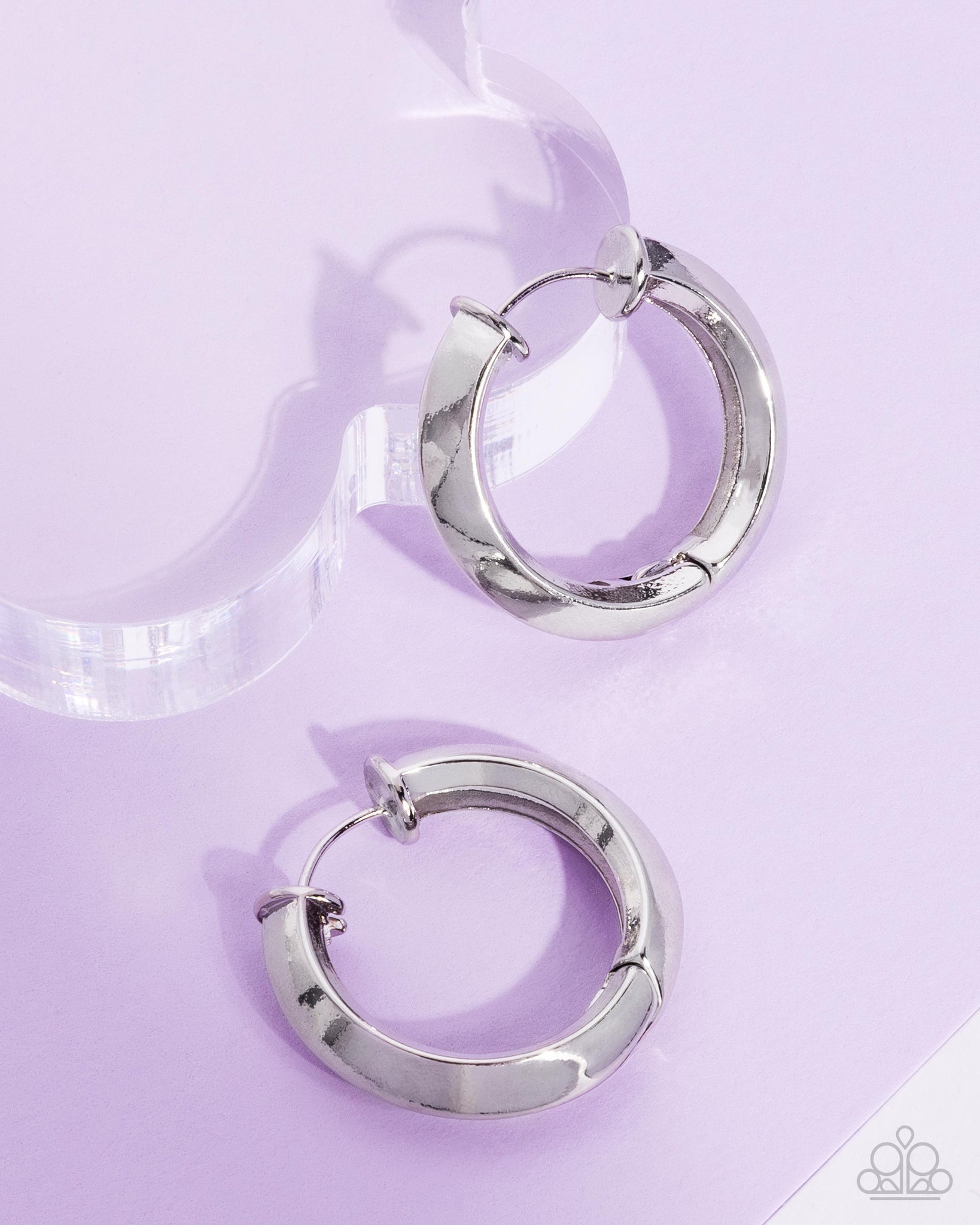 Streaming from circular fittings, sleek silver hoops curl and hug the ear for an admirable, eye-catching display. Earring attaches to a standard hinge closure fitting. Hoop measures approximately 1 1/4" in diameter.