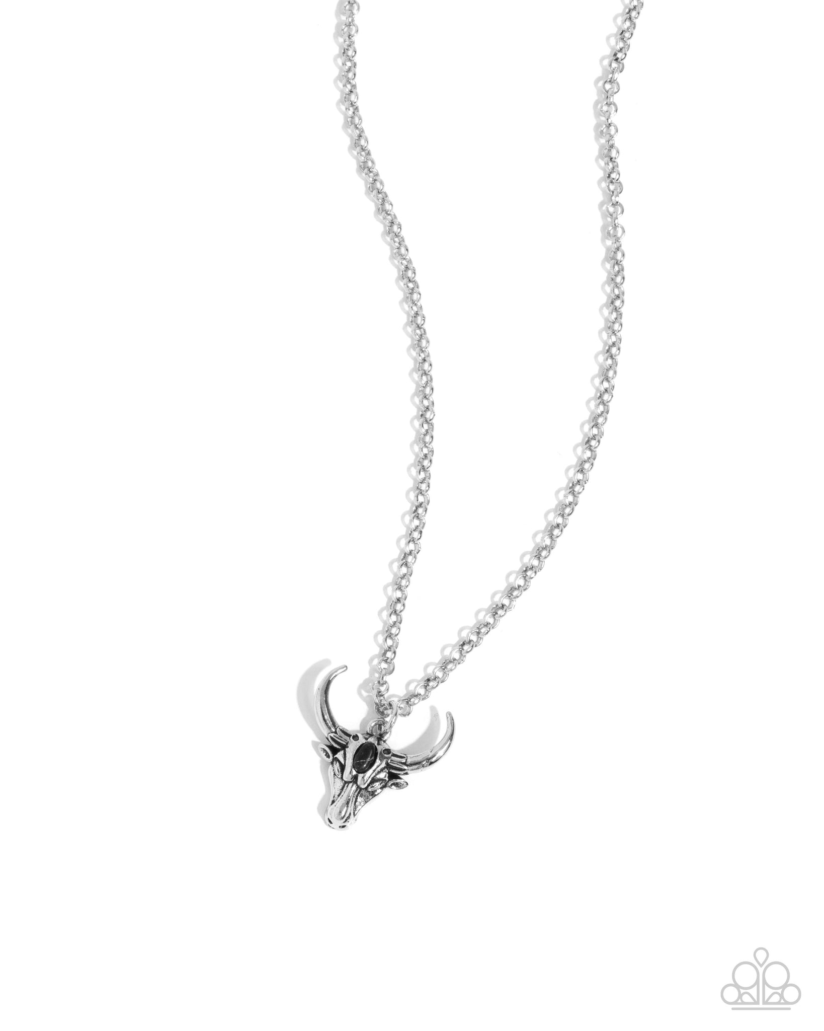 Embellished with an oval black stone, a silver longhorn skull pendant glides along a classic, silver cable chain for a whimsically Western look. Features an adjustable clasp closure. As the stone elements in this piece are natural, some color variation is normal.