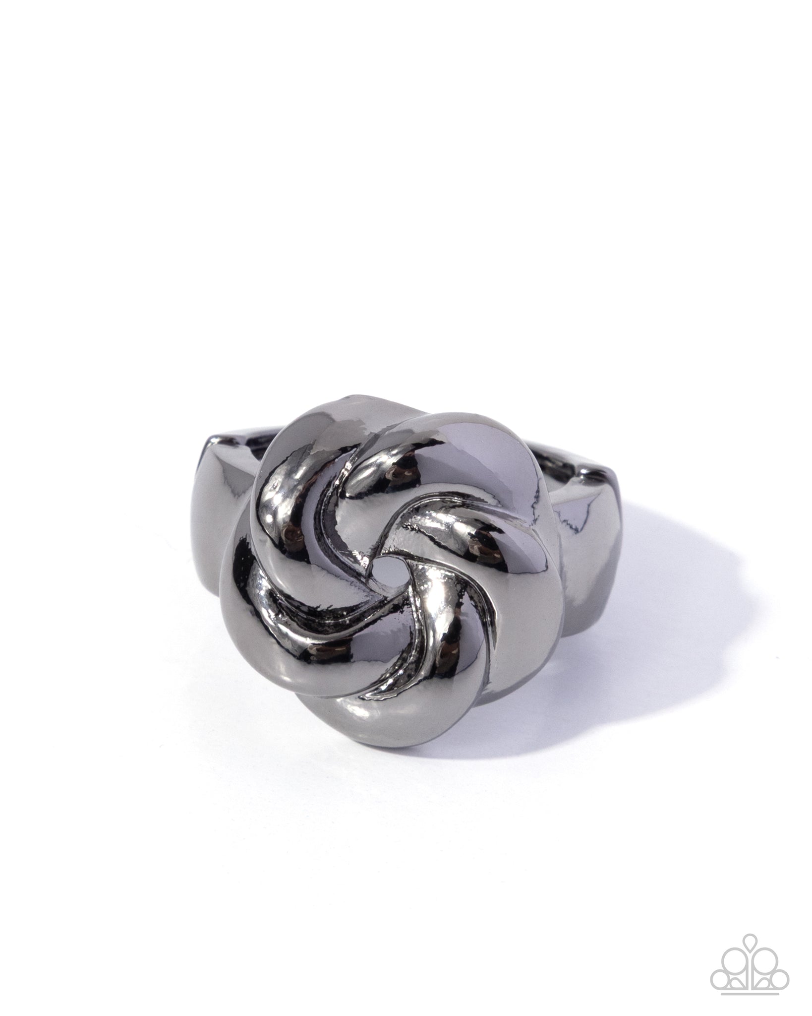 Featuring a high sheen, a gunmetal knot-inspired centerpiece stands out atop the finger for an eye-catching display. Features a stretchy band for a flexible fit.